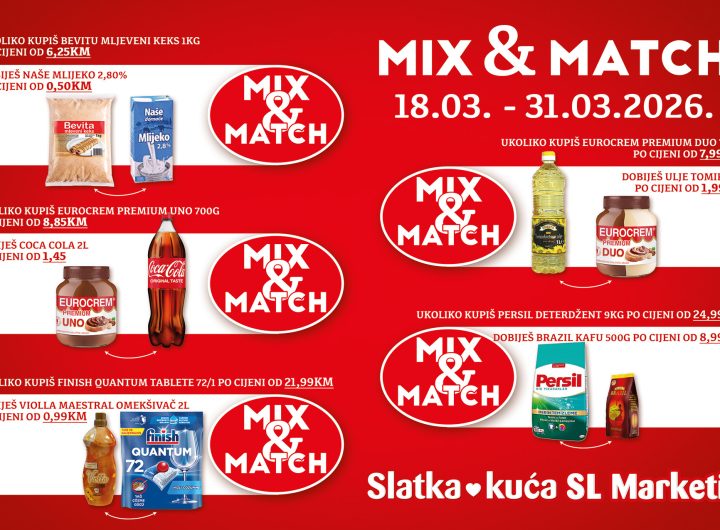 Super mix&match akcija u SL marketima i Slatkim kućama. Ukoliko kupiš bevita mljeveni keks 1kg po redovnoj...