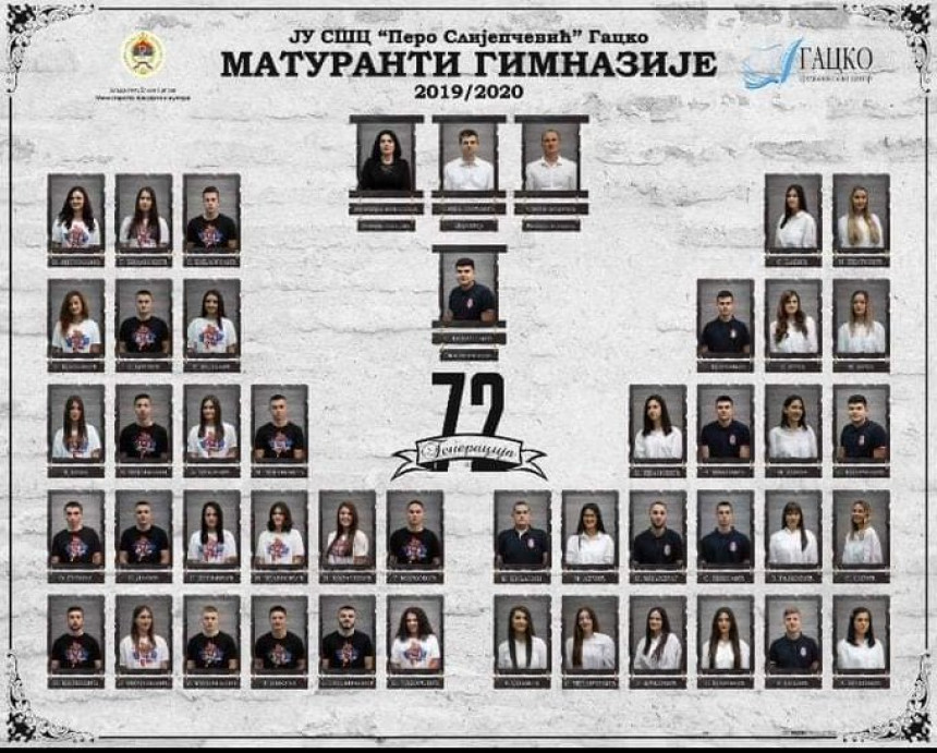 Ali su zato imali ideju i poruku. Maturanti Srednjoškolskog centra „Pero Slijepčević“ izazvali su veliku pažnju i oduševljenje javnosti. Naime, generacija koja je ove godine napustila klupe srednje škole slikala se za pano u majicama sa srpskim grbom i natpisom “Kosovo je Srbija-Nema predaje“.