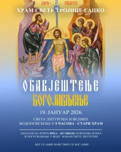 • Богојављење- света литургија и водоосвећење у старом Храму Свете Тројице, погружавање у језеру Врба