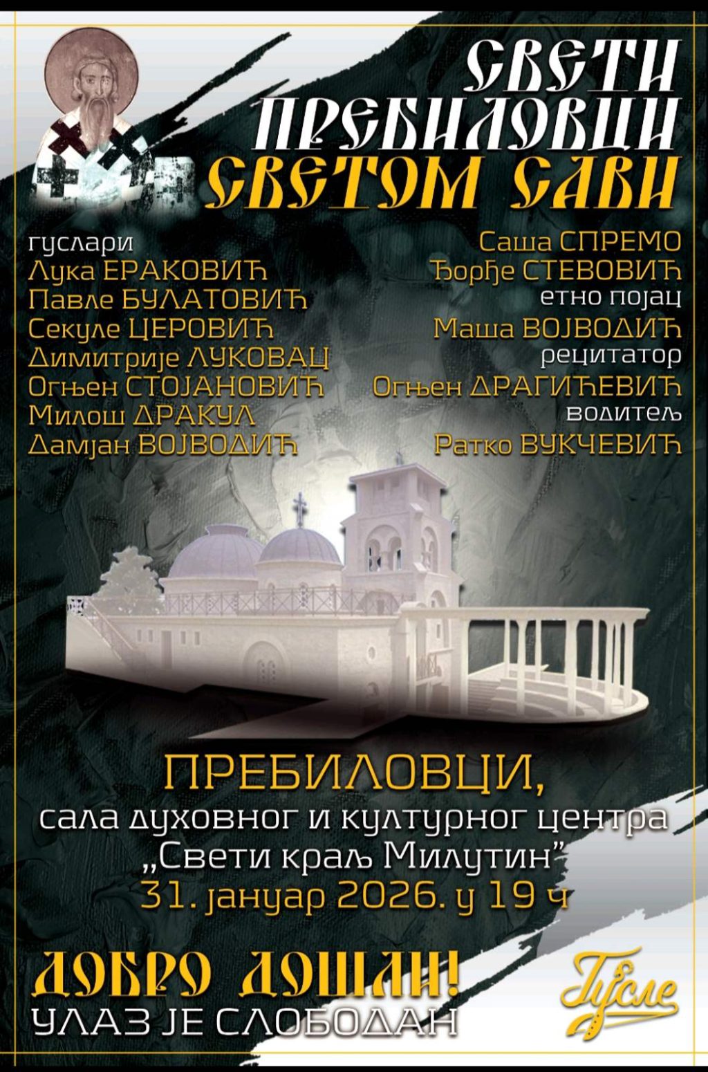 • Свети Пребиловци Светом Сави-гусларско вече у суботу