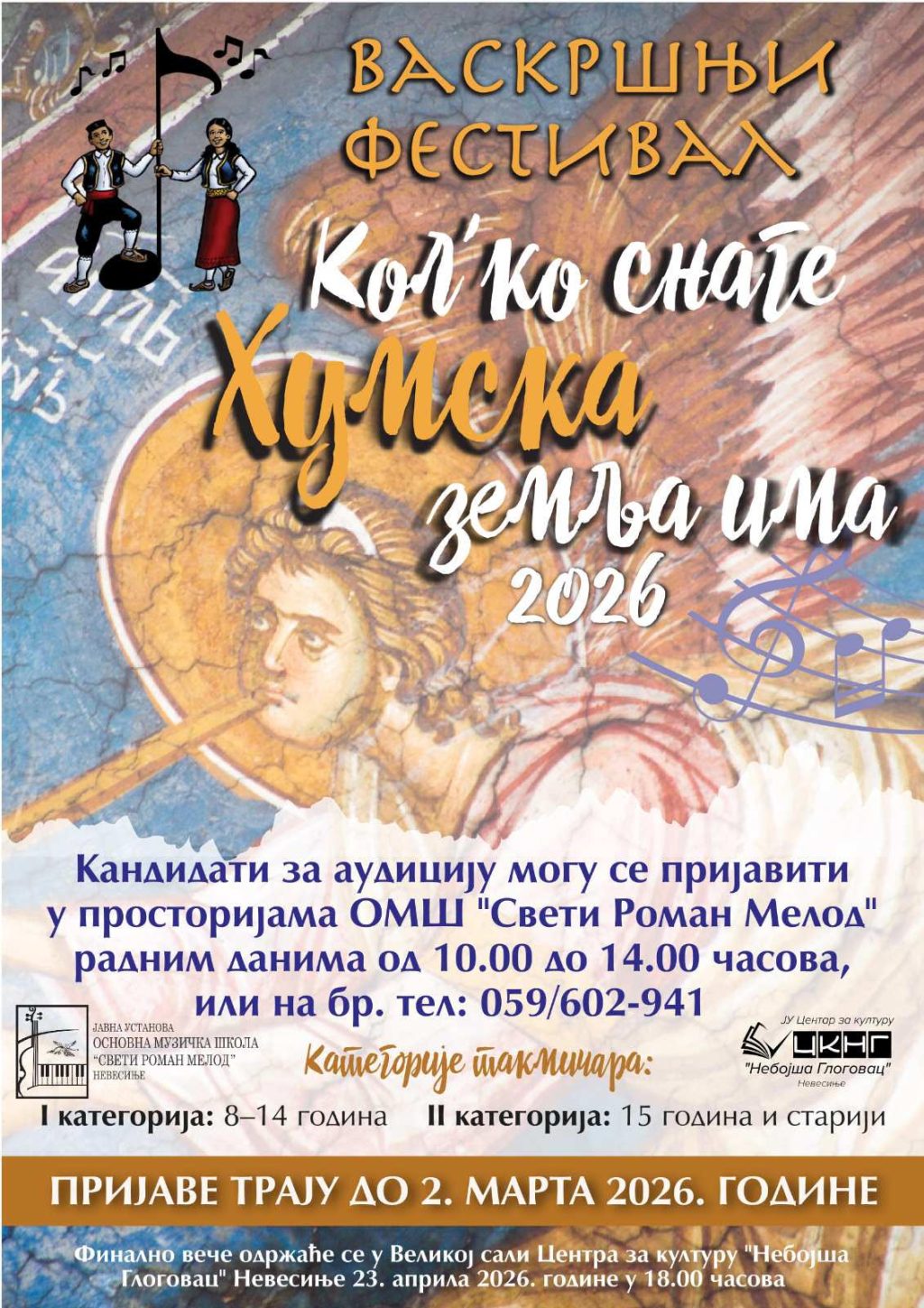 ЈУ ОМШ „Свети Роман Мелод“ и Центар за културу „Небојша Глоговац“ Невесиње организују Васкршњи фестивал „Кол’ко снаге хумска земља има“.